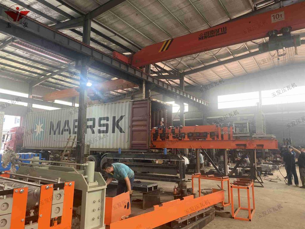 外貿壓瓦機設備訂單集裝箱發貨中-河北玉發壓瓦機